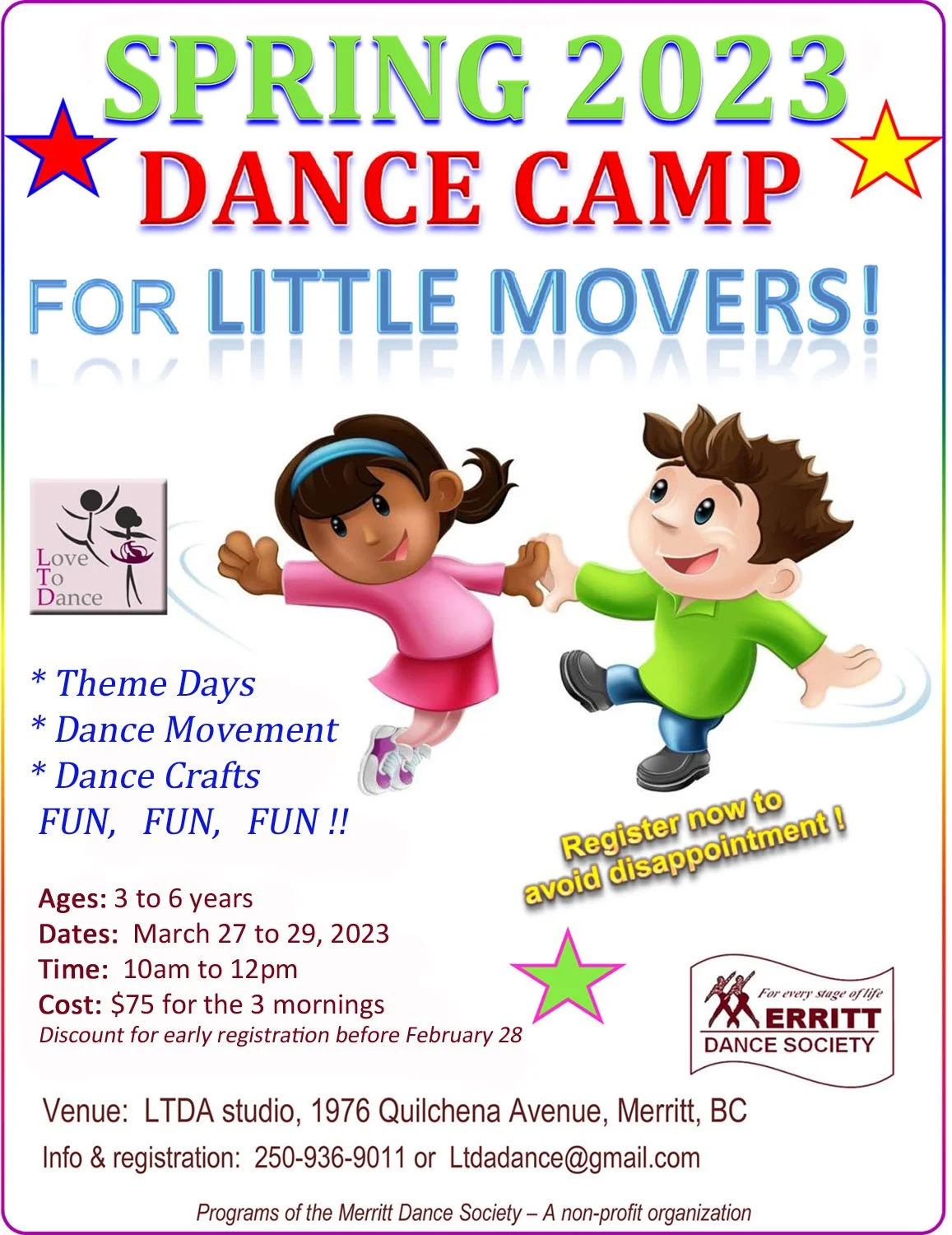 Spring Dance Camps - 2023 - For “Little Movers” and “Young Ones” - March 27 to 31.
