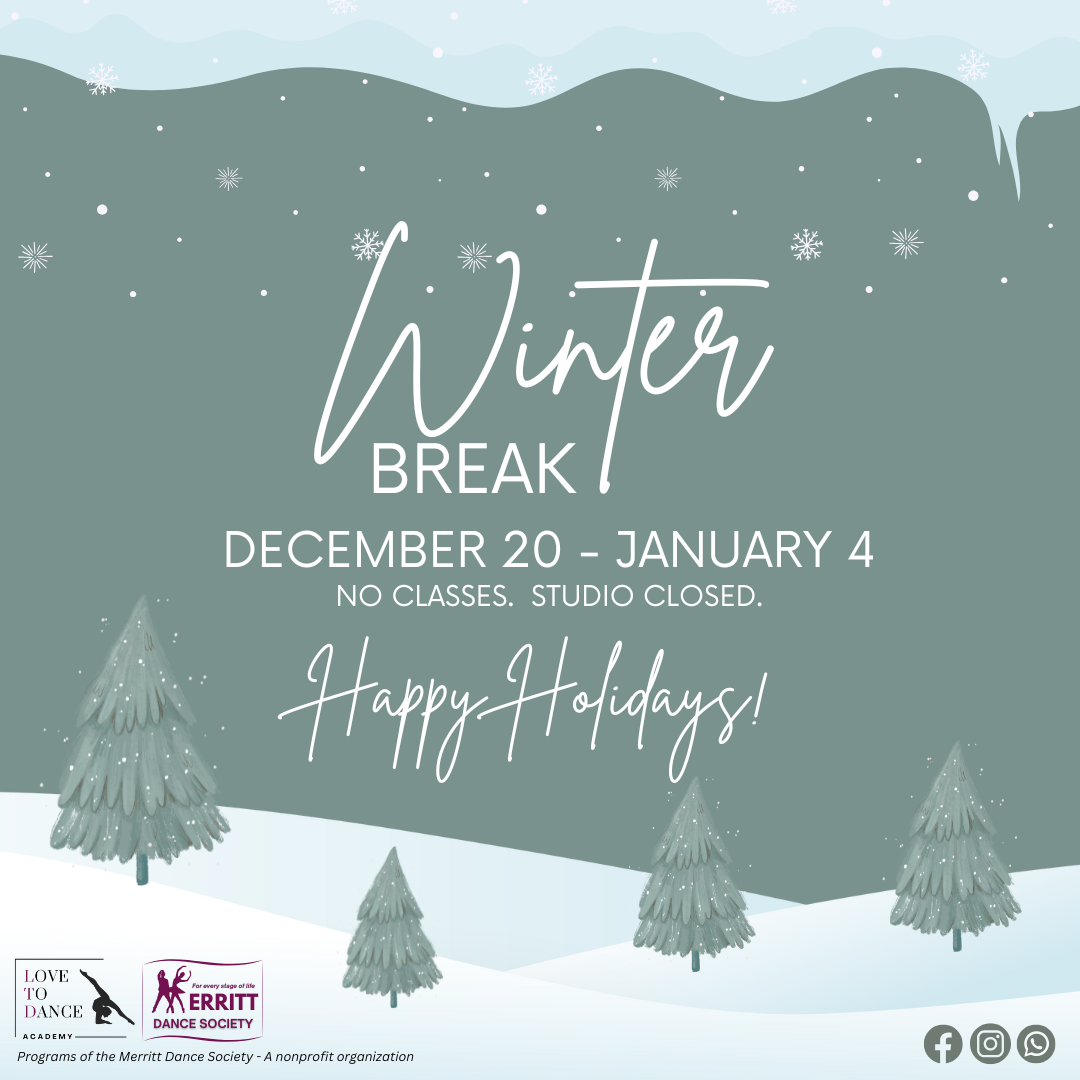 Winter Break Saturday, December 20, 2025 9:00 a.m. 09:00 Sunday, January 4, 2026 10:00 p.m. 22:00 Love to Dance Academy 1976 Quilchena Avenue Merritt, BC, V1K Canada (map) Google Calendar ICS